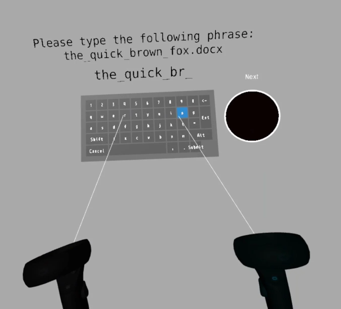 I found research into different modes of text input including a variety of interaction modes with virtual keyboards. Some of the studies showed different (or no) parameters relating to the position of the keyboard in virtual space in relation to the participants, which prompted the question of whether the position has an impact on the user experience.
